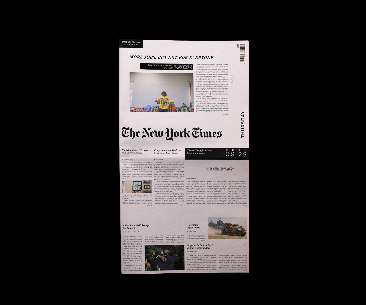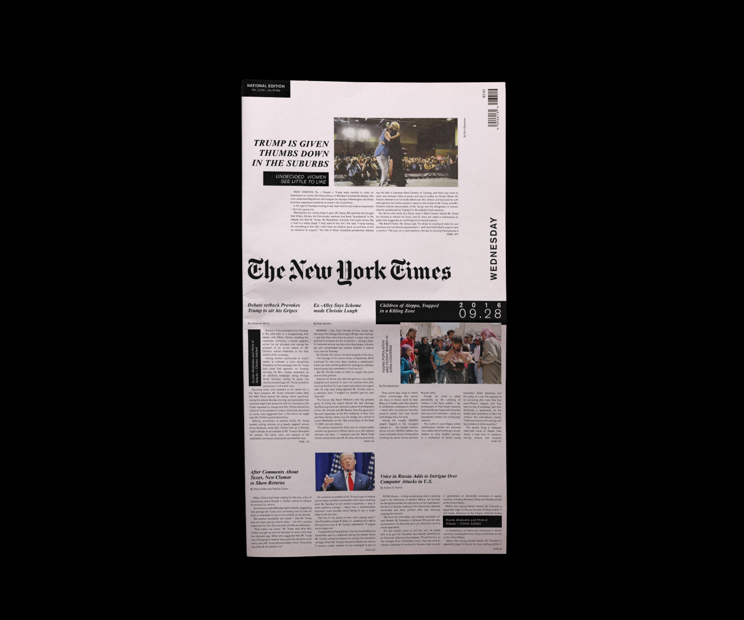 This project imagines The New York Times as a website that accidentally became a newspaper. The cover works like a hero section, anchored by a single main story, while supporting headlines along the bottom behave more like links sitting just above the fold. Even the paper’s thickness gets a job, using the spine to surface top stories and the date so when newspapers start piling up in the corner, it’s still easy to find what you’re looking for. It’s a web-first way of thinking applied to print, turning familiar digital habits into something you can actually hold, or throw away.